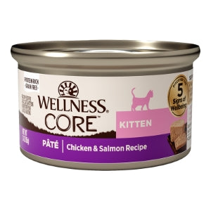 Wellness CORE Kitten wet cat food recipe is protein rich and uses high-quality ingredients to support whole-body health. Each recipe is thoughtfully crafted to support the five signs of wellbeing plus the unique nutritional needs of your cat. This Kitten recipe is carefully formulated to support healthy growth with DHA for Brain & Eye Development. Each grain free, nutrient-rich formula provides high quality protein for your cat with no Artificial Flavors, Preservatives, or Colors and is Carrageenan Free.