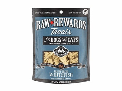 Northwest Naturals Raw Rewards Freeze Dried Whitefish Cat and Dog Treats are wholesome, healthy, single ingredient treats naturally rich in protein and essential nutrients. Sourced and made in USA.