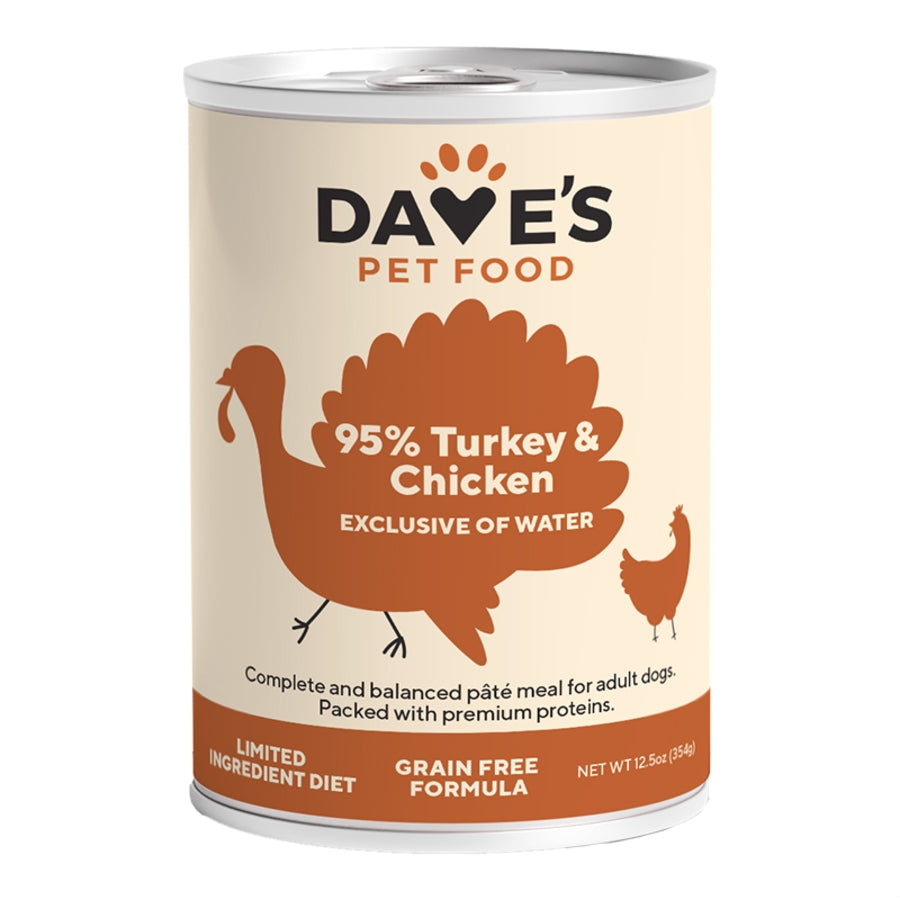 Designed as a complete and balanced meal, Dave’s 95% Premium Meats recipes are a more affordable, but equally beneficial alternative to a raw diet. Packed with just premium-protein chicken and turkey, vitamins, minerals, and water, it’s an especially effective approach to feeding overweight dogs and dogs with diabetes. Try it alone as a meal or as to complement their kibble.