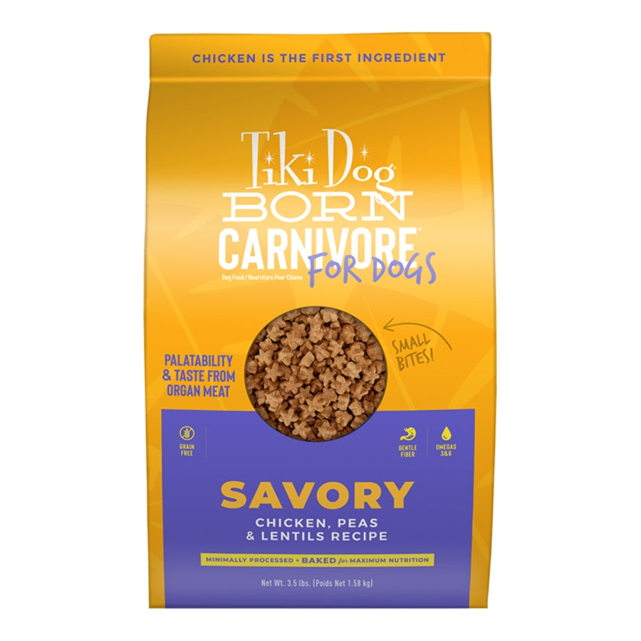 Tiki Dog Born Carnivore delivers a protein-rich formula designed for dogs with carnivorous nutritional needs. This grain-free dry food features savory chicken as the primary ingredient, complemented by peas and lentils for balanced nutrition. The recipe prioritizes meat-based proteins to support lean muscle development and sustained energy throughout the day. Formulated without grains, corn, wheat, or soy, it's crafted for dogs requiring simplified, meat-forward diets. The 3.5lb bag provides convenient portion control for smaller households or trial periods. Ideal for dogs thriving on high-protein, grain-free nutrition.
