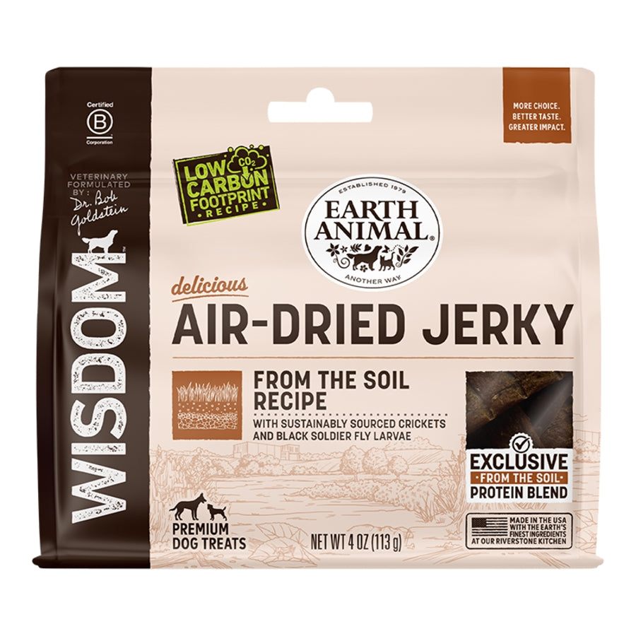 Earth Animal Wisdom Air-Dried Jerky incorporates nutrient-dense grubs and Black Soldier Fly larvae, providing a natural source of protein and essential minerals. This treat supports your dog’s overall health by delivering wholesome ingredients through a gentle air-drying process that preserves vital nutrients. Ideal for rewarding active dogs, it combines sustainability with superior nutrition for a balanced and flavorful snack.