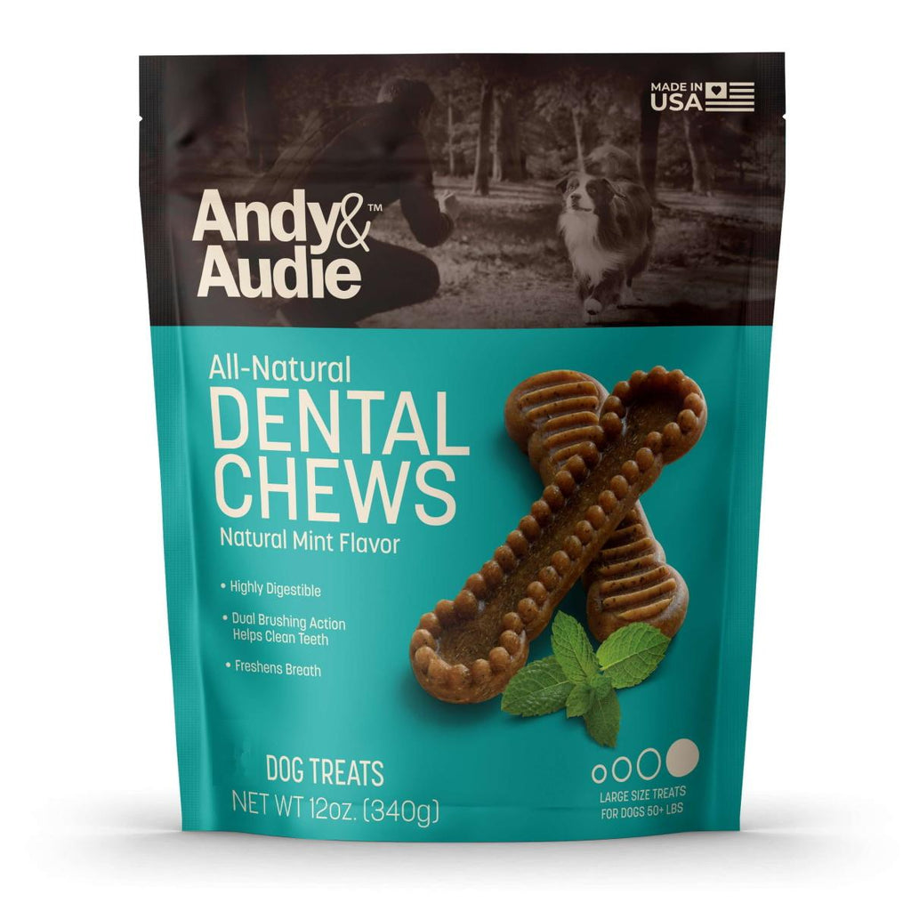 Andy & Audie Dog Chews are made in the USA with natural ingredients. These chews have a delicious mint flavor, are highly digestible, and feature USA sourced ingredients.