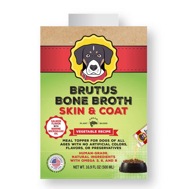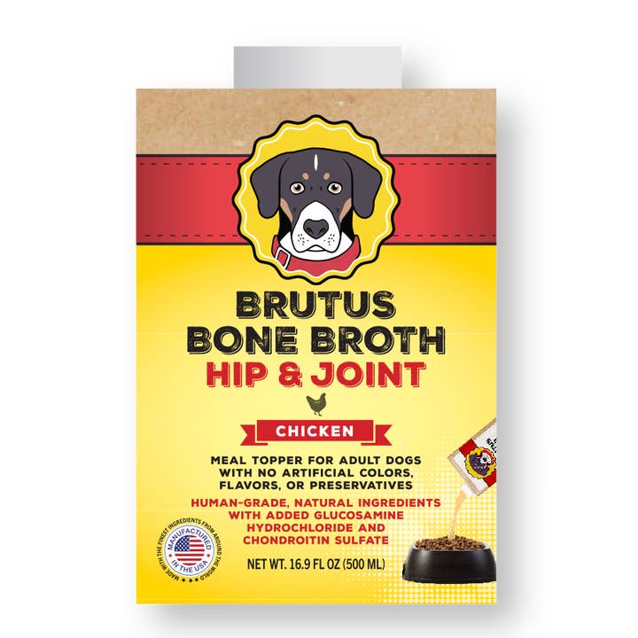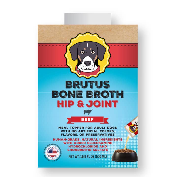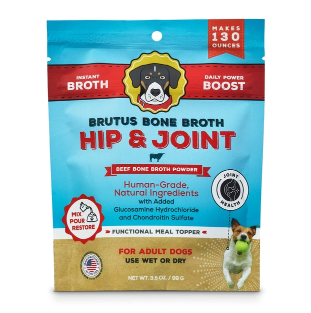 Our Instant Bone Broth is a convenient, powdered version of our human-grade Brutus Bone Broth. This functional powder provides all the benefits of Brutus Broth’s liquid broth in a convenient, shelf-stable pack with a unique formulation for targeted support. Just add one scoop (included) to 8 oz. of water and shake or stir to create a liquid broth. Serve daily as a food topper, treat, or hydration amplifier with added protein and functional benefits. This product is perfect for multi-dog households, ranch and rescue customers, or other partners who may need custom options that are flexible and shelf stable.