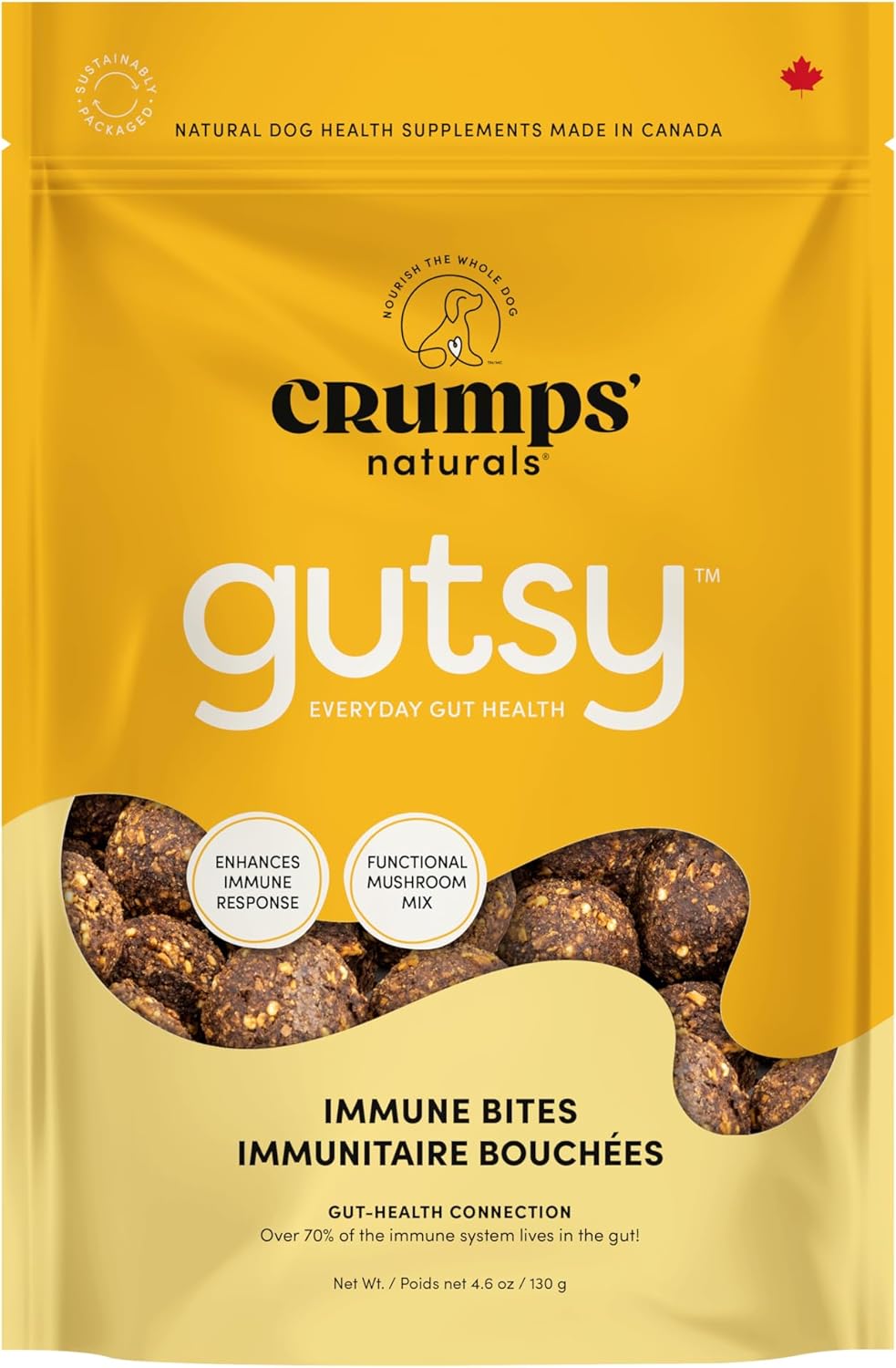 Gutsy Immune Bites help reinforce your dog’s immunity with gut boosting prebiotics in every bite. Formulated with science backed ingredients like fermented yeast and powerful prebiotics to help naturally occurring good gut bacteria thrive.