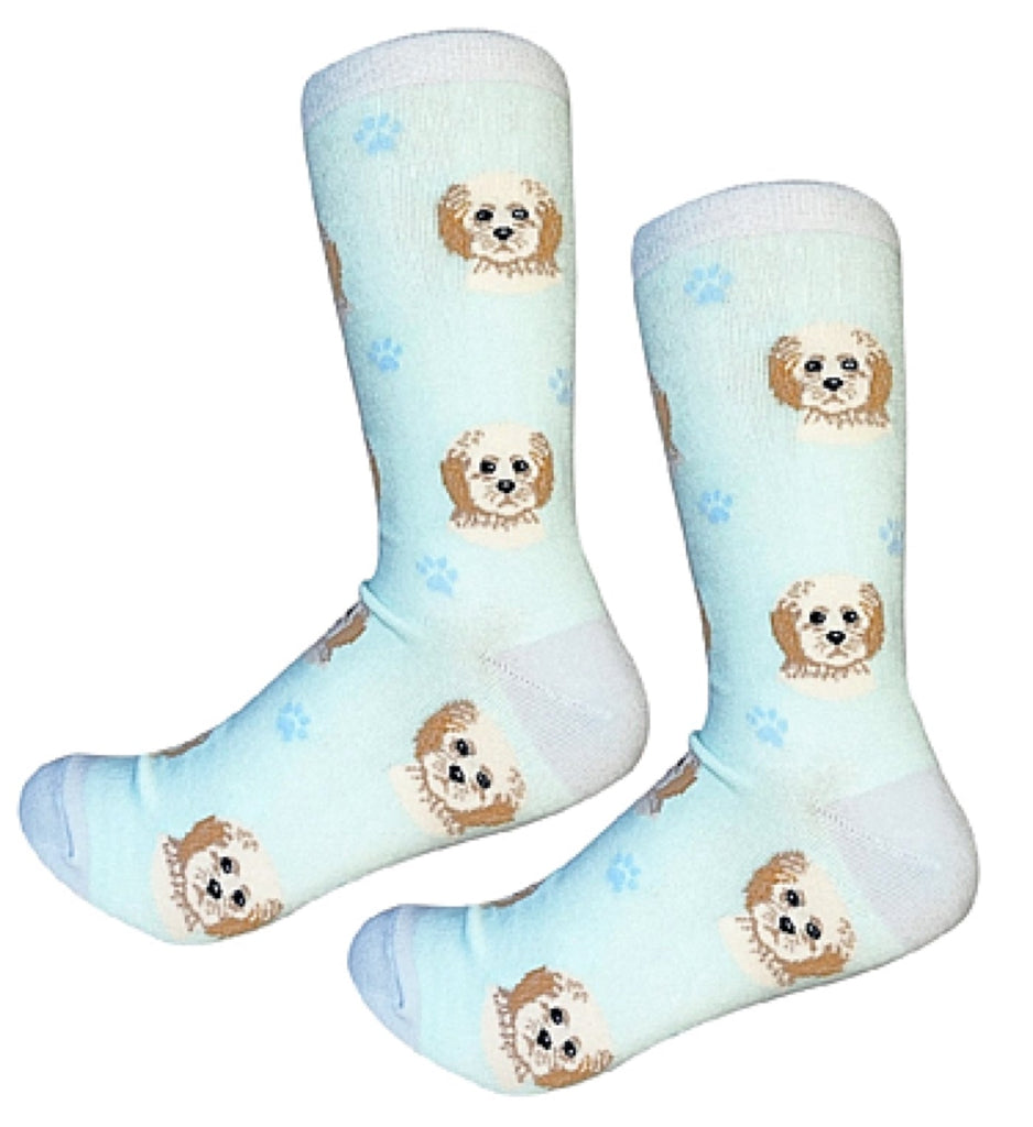 Our socks are made from the finest quality cotton. We use 200 Needle count machines to make them while most of the companies only go up to 144 needle count. There are 20 to 24 dog faces woven on each pair of socks. Best of all, these socks are super soft and comfortable and they are machine washable. These socks also make make great gifts for anyone in your family and friends.
