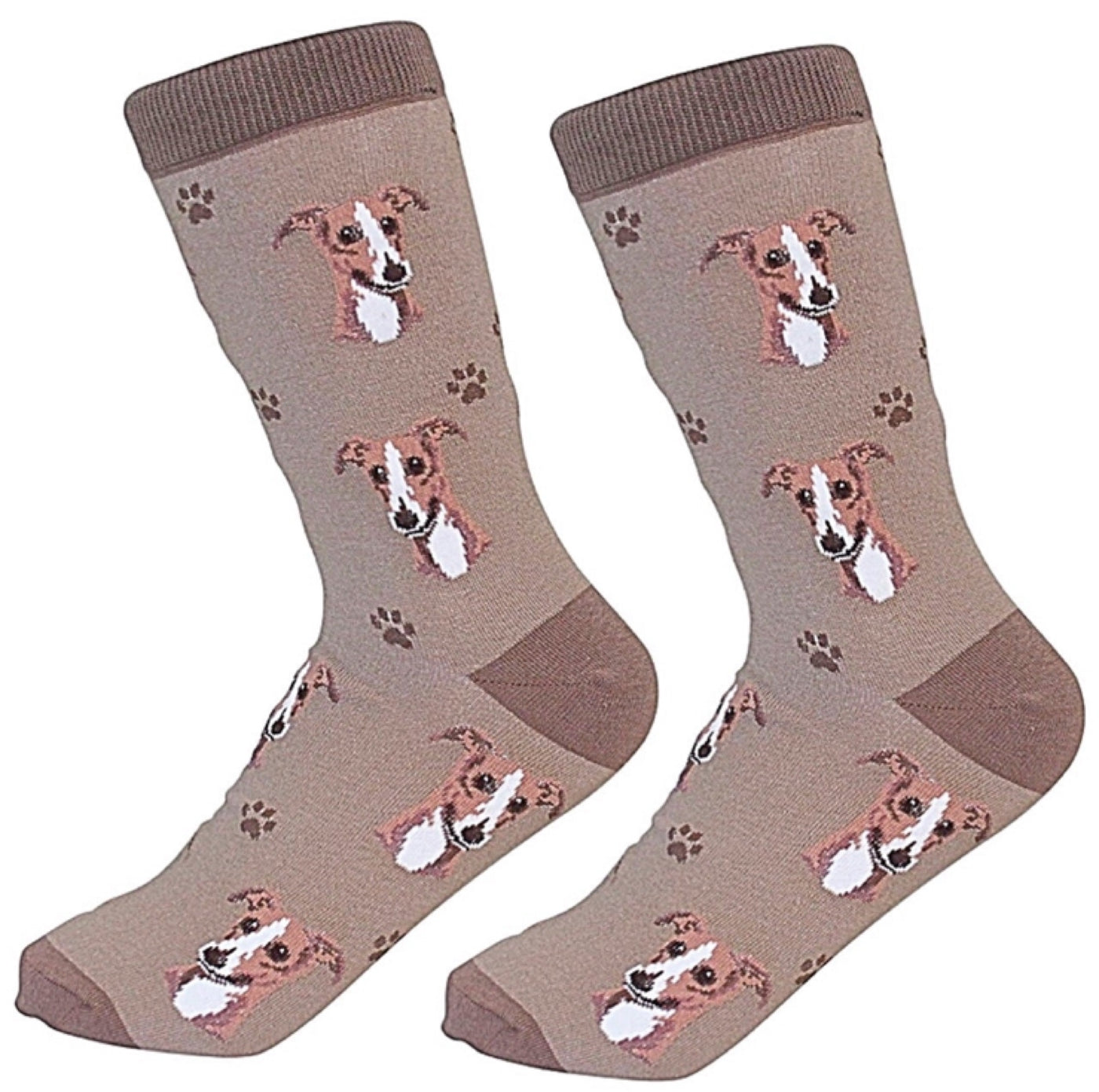 Our socks are made from the finest quality cotton. We use 200 Needle count machines to make them while most of the companies only go up to 144 needle count. There are 20 to 24 dog faces woven on each pair of socks. Best of all, these socks are super soft and comfortable and they are machine washable. These socks also make make great gifts for anyone in your family and friends.