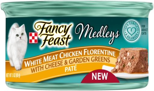Treat your feline friend to a gourmet dining experience with Fancy Feast Medleys Chicken and Cheese Florentine! This delectable wet cat food combines tender chicken morsels with a touch of cheese in a savory Florentine-style sauce that will have your kitty purring with delight. Watch those whiskers twitch with anticipation as you pop open this positively scrumptious meal that turns ordinary feeding time into a fancy feast fit for your furry royalty!